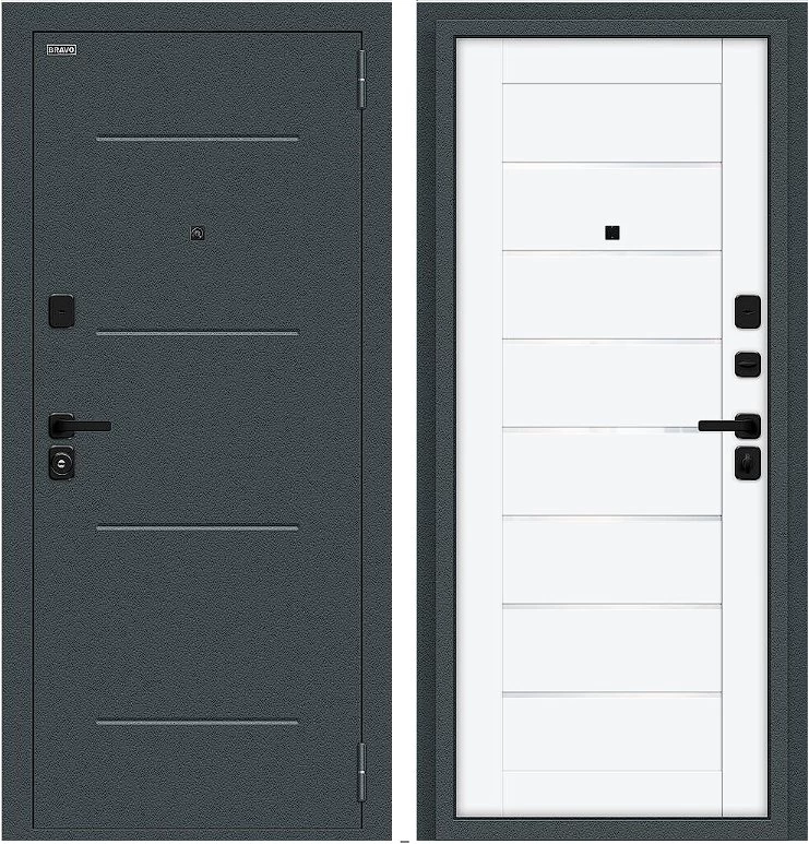 Дверь Браво Техно/SBlack Старк антрацит/White Silk среднего ценового диапазона. Стоит дверь 29 750 руб. и это отличное соотношение цены и качества. Модель подойдет для установки, например в новостройку. Прослужит долго и будет надежной защитой вашей квартиры или дома.